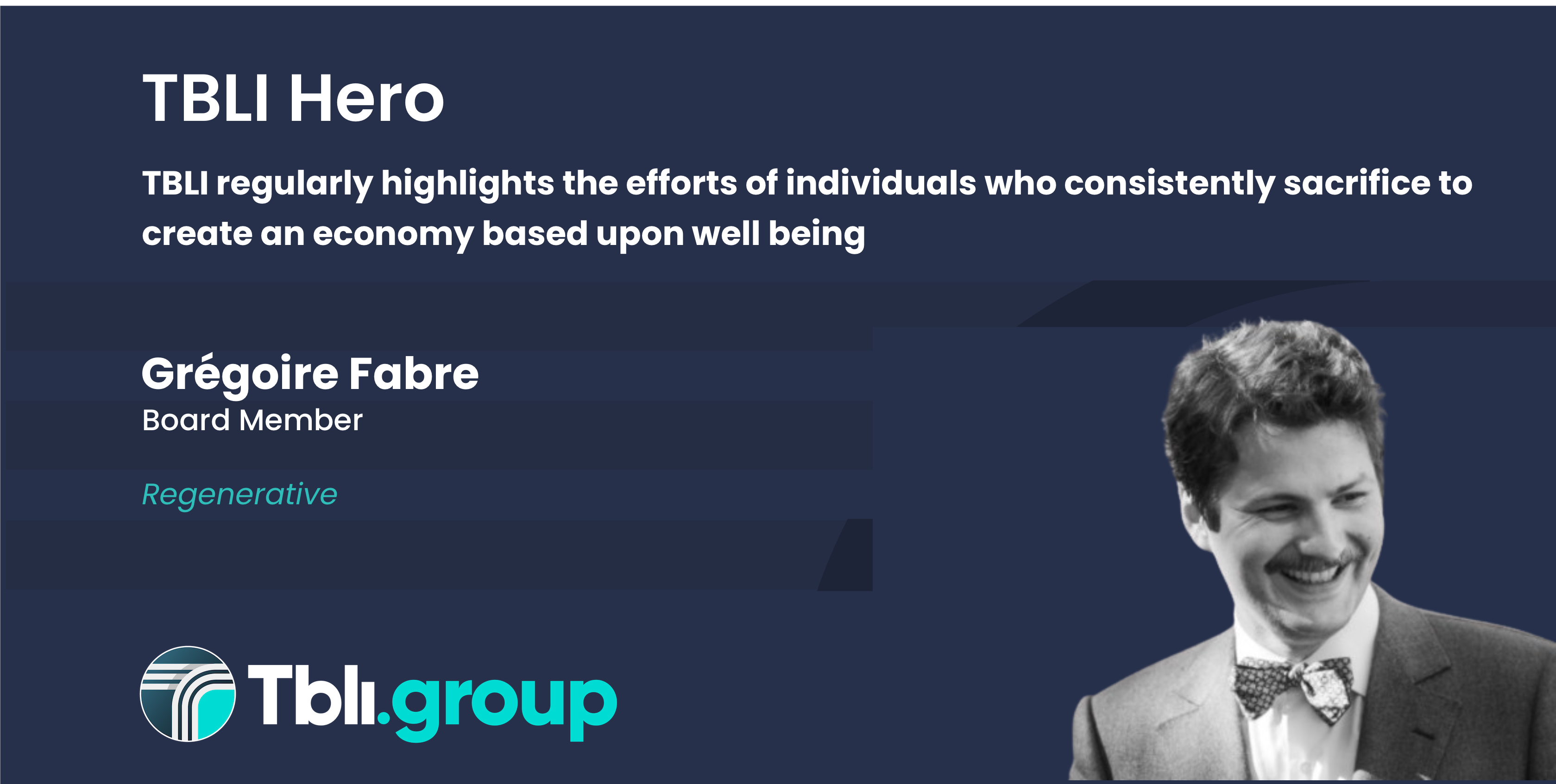 Grégoire Fabre is chosen as a TBLI Hero for redefining how capital drives positive change. As a leader in sustainable finance, Grégoire has dedicated his career to steering investments toward solutions that balance profit with purpose, proving that financial innovation and planetary regeneration can go hand in hand.